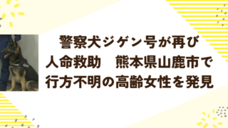 熊本県警で活動する警察犬ジゲン号が、再び人命救助という重要な役割を果たしました。2025年12月、熊本県山鹿市鹿央町で発生した高齢女性の行方不明事案において、警察犬ジゲン号が捜索に参加し、女性を無事発見しました。この出来事は2026年2月4...