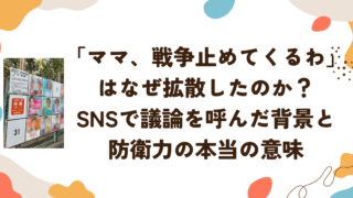時事・ニュース 「ママ、戦争止めてくるわ」はなぜ拡散したのか?SNSで議論を呼んだ背景と防衛力の本当の意味