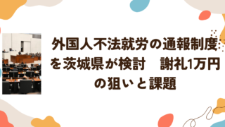 茨城県が導入を検討している外国人不法就労に関する通報報奨金制度が大きな議論を呼んでいます。この制度は、市民から寄せられた情報によって不法就労の摘発につながった場合、通報者に約1万円の謝礼を支払うというものです。県は2026年度からの導入を目...