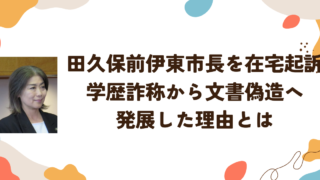 2026年3月30日、静岡県伊東市の前市長・田久保眞紀被告が在宅起訴され、長く続いてきた学歴詐称問題はついに司法の場へと移りました。これまで“田久保劇場”とも呼ばれてきた一連の騒動は、政治問題から刑事事件へと性質を変え、今後は裁判で真相が問...