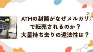 時事・ニュース ATMの封筒がなぜメルカリで転売されるのか?大量持ち去りの違法性は? 2025年10月初旬、「ATMコーナーに設置されている現金用の封筒(銀行が無料提供しているもの)が、メルカリやヤフオクで大量に転売されている」という話題がSNSで拡散され、J-CASTニュースなど複数メディアでも報じられました。 本来は「A... 2025.10.03 時事・ニュース