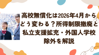 教育・育児 高校無償化は2026年4月からどう変わる?所得制限撤廃と私立支援拡充・外国人学校除外を解説