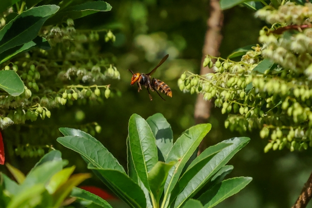 特に山道や農道などでは、木の枝の中や地中などに巣を作っていることがあり、知らずに近づくと突然刺される危険があります。